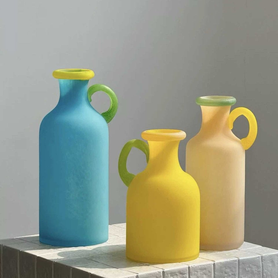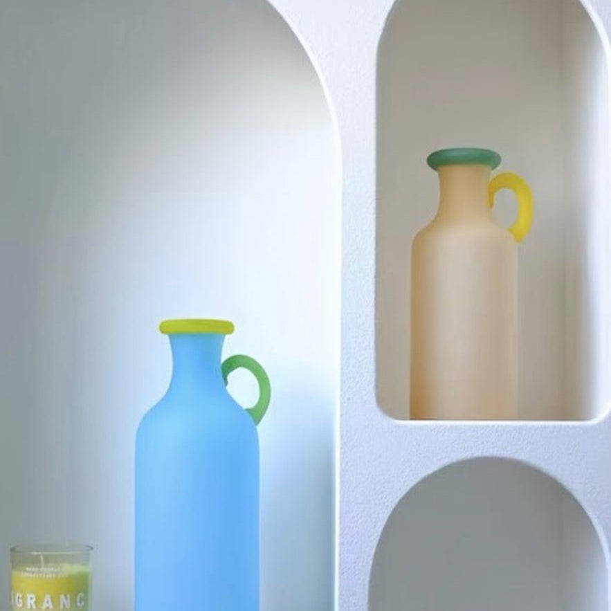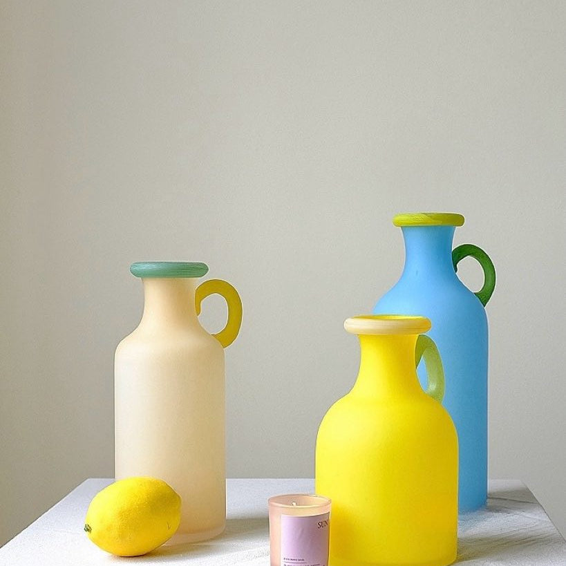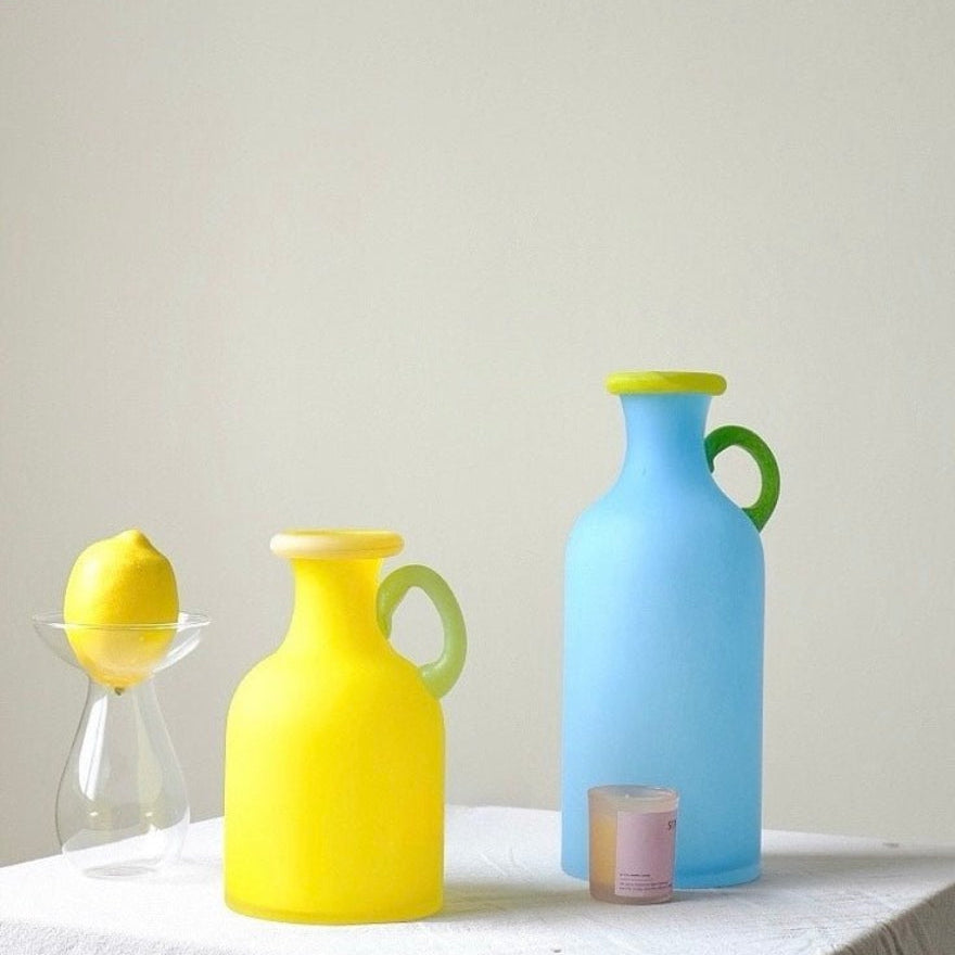 Inspired by the Fauvism paintings, these cute whimsical pitcher vases are mouth blown and hand painted with bold catchy colours, making them not only a a visual feast but also uplift of your mood.